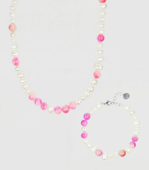 Das Bloom Bracelet vereint zarte Süßwasserperlen mit leuchtenden pinken Natursteinperlen – inspiriert vom Farbenspiel des Universums zwischen Ruhe und Energie. Handgefertigt in Wien aus echten Süßwasserperlen, Natursteinen & Edelstahl.